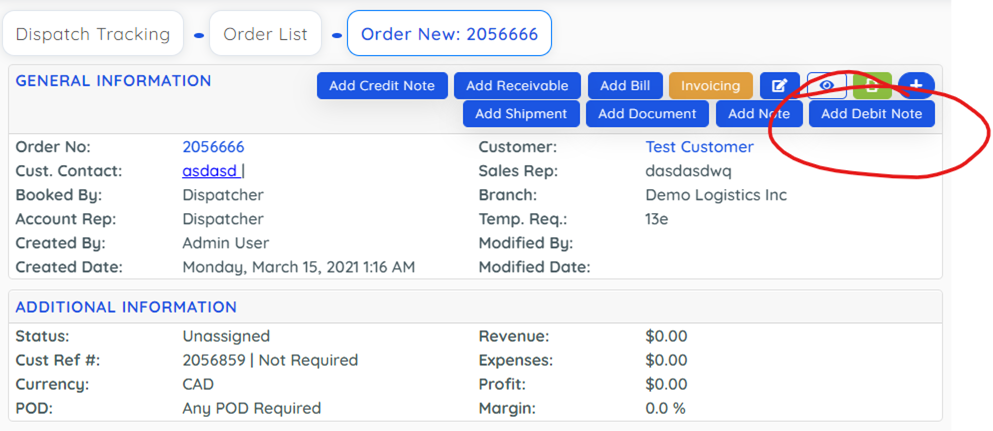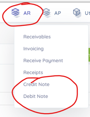 From below screens you can see all created AR - Credit Note and Debit Notes: