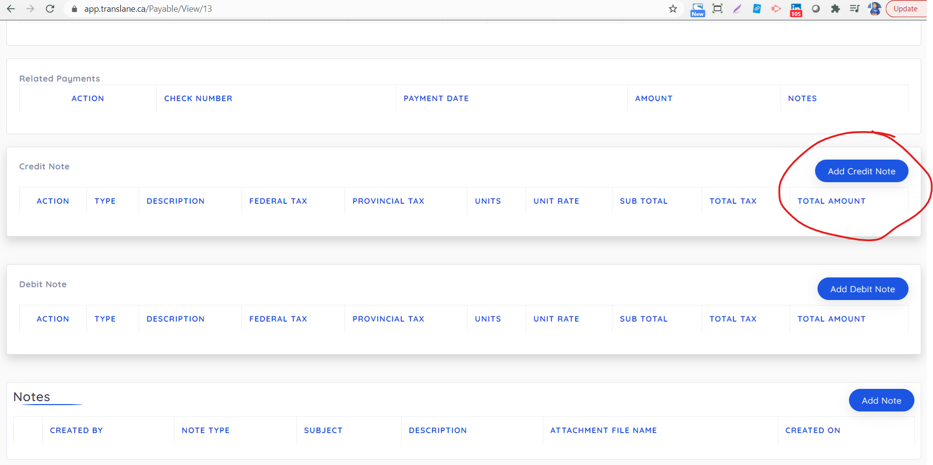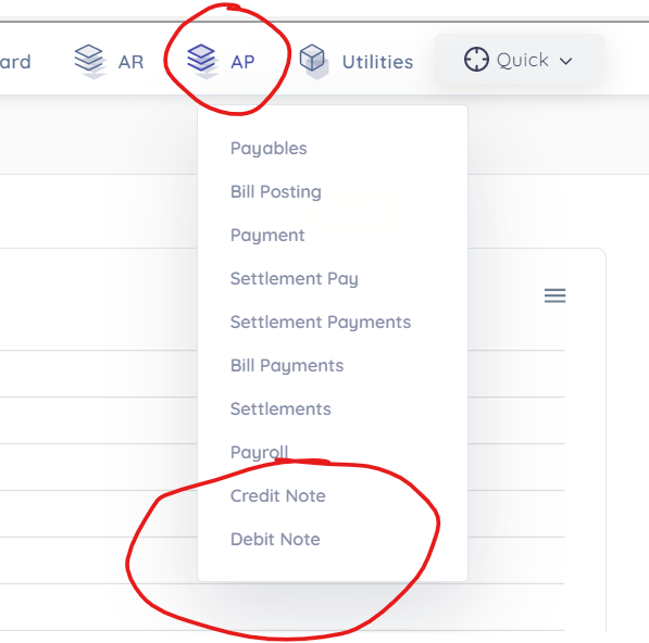 From below screens you can see all created AP - Credit Note and Debit Notes: